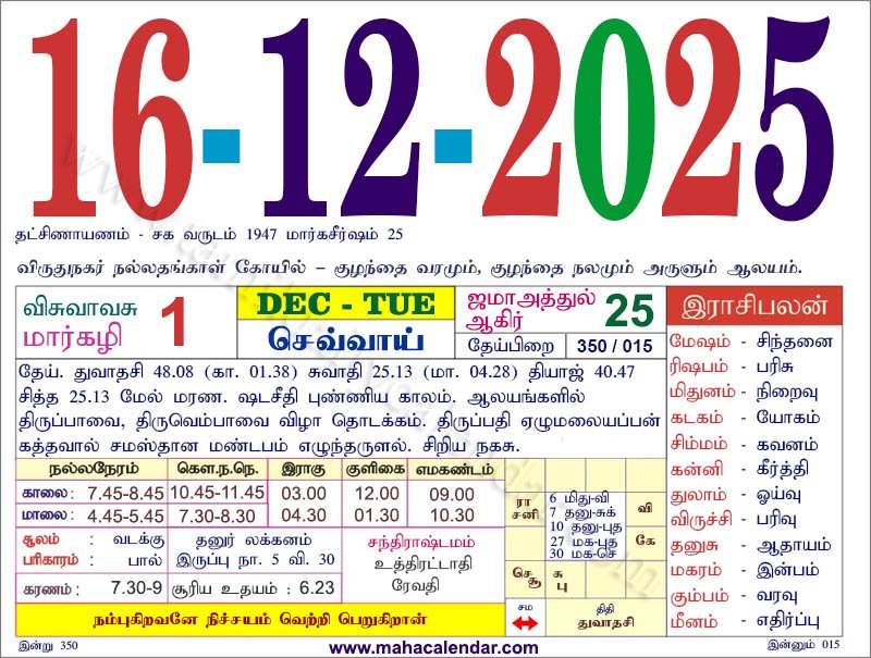| அஷ்டமி | 12-டிசம்பர்-2025 வெள்ளிக்கிழமை 27-டிசம்பர்-2025 ஞாயிறு |