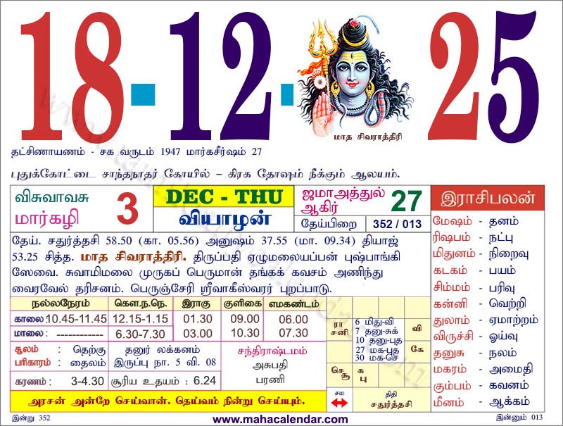 | அமாவாசை | 19-டிசம்பர்-2025 வெள்ளிக்கிழமை |