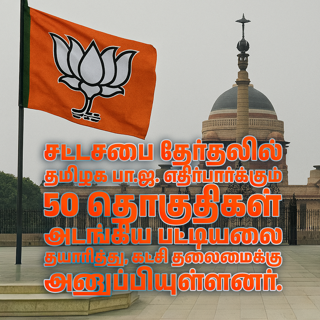 சட்டசபை தேர்தலில் தமிழக பா.ஜ. எதிர்பார்க்கும் 50 தொகுதிகள் அடங்கிய பட்டியலை தயாரித்து, கட்சி தலைமைக்கு அனுப்பியுள்ளனர்.