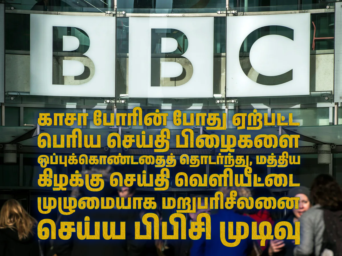 காசா போரின் போது செய்தி வெளியீட்டில் ஏற்பட்ட பல முக்கிய பிழைகளை ஒப்புக்கொண்டதைத் தொடர்ந்து, மத்திய கிழக்கு தொடர்பான தனது முழு செய்தி வெளியீட்டை மறுபரிசீலனை செய்ய பிபிசி அறிவித்துள்ளது. இது சமீபத்திய ஆண்டுகளில் அந்த நிறுவனத்தால் மேற்கொள்ளப்பட்ட மிக விரிவான ஆசிரியர் ஆய்வுகளில் ஒன்றாகக் கருதப்படுகிறது.