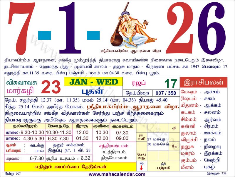 | கார்த்திகை | 27-ஜனவரி-2026 செவ்வாய் |