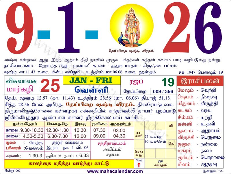 | சஷ்டி விரதம் | 24-ஜனவரி-2026 சனிக்கிழமை |