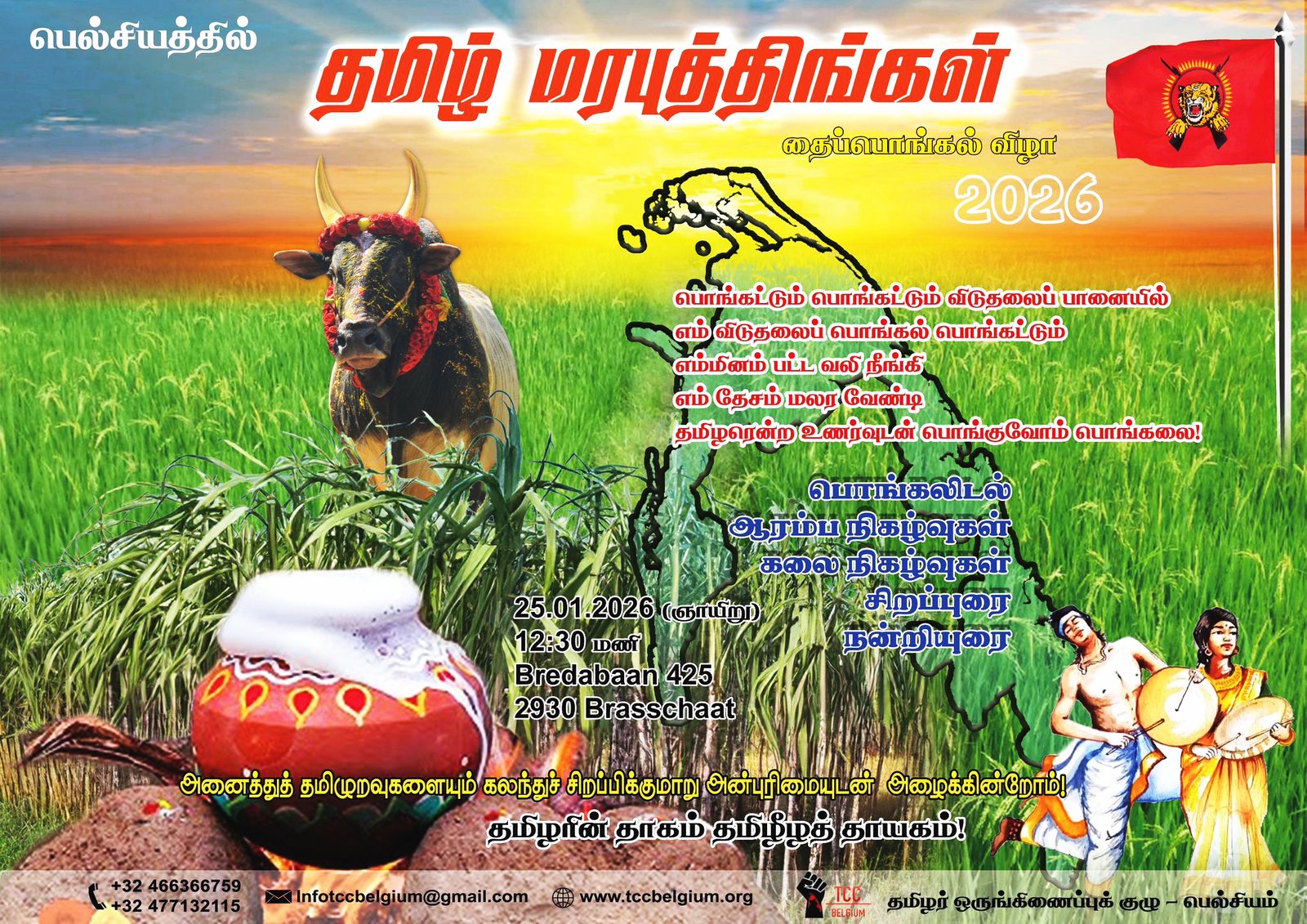 புலம்பெயர் தமிழர்கள்முதன்மை செய்திகள் தமிழ் மரபுத்திங்கள் தைப்பொங்கல் பெருவிழா 2026 – பெல்சியம் written by 11 January 2026 0 comments 0FacebookTwitterPinterestEmail 12 தமிழ் மரபுத்திங்கள் தைப்பொங்கல் பெருவிழா 2026 – பெல்சியம் பகிரவும் Print (Opens in new window) Print Share on WhatsApp (Opens in new window) WhatsApp Post Share on Telegram (Opens in new window) Telegram Email a link to a friend (Opens in new window) Email Share on Tumblr Share on Threads (Opens in new window) Threads Like this:Like Loading... Related Belgium - பெல்சியம்Tamil Diaspora - புலம்பெயர் தமிழர்கள் 0 FacebookTwitterPinterestEmail Amizhthu previous post காவிய நாயகன் தளபதி கேணல் கிட்டு உட்பட வீரமறவர்களின் நினைவெழுச்சி நிகழ்வு – பெல்சியம் next post காவிய நாயகன் தளபதி கேணல் கிட்டு உட்பட வீரமறவர்களின் நினைவெழுச்சி நிகழ்வு – நோர்வே Leave a ReplyCancel reply