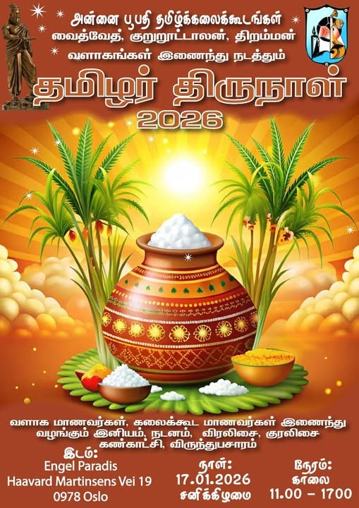 அன்னை பூபதி தமிழ்க்கலைக்கூடங்கள் வைத்வேத, குறுறூட்டாலன், திறம்மன் வளாகங்கள் இணைந்து நடத்தும் “தமிழர் திருநாள் 2026 ஒஸ்லோ”