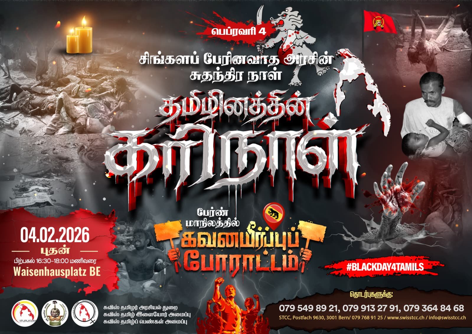பெப்ரவரி 4 ஆம் நாள் சிறீலங்கா ( சிங்கள) தேசத்தின் சுதந்திரநாள். இது ஈழத்தமிழ்மக்களின் துயரம் நிறைந்த கரிநாளாகும்.