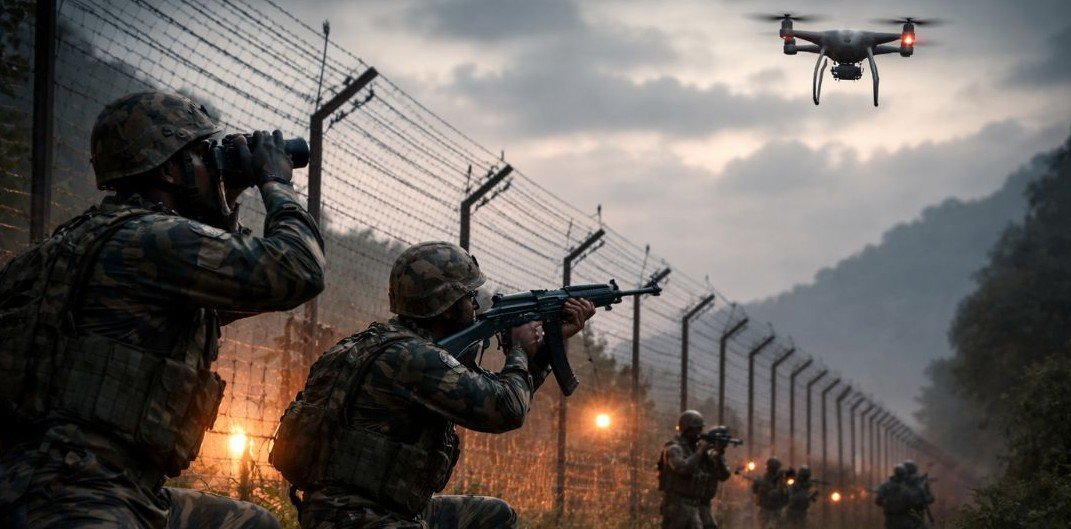 ஜம்மு & காஷ்மீரின் எல்.ஓ.சி. (Line of Control) மற்றும் சர்வதேச எல்லை (IB) பகுதிகளில் கடந்த 48 மணி நேரத்தில் பல முறை ட்ரோன் பறப்புகள் பதிவானதைத் தொடர்ந்து, பாதுகாப்பு படைகள் கண்காணிப்பை தீவிரப்படுத்தி, விரிவான தேடுதல் நடவடிக்கைகளை மேற்கொண்டுள்ளன. இந்த சம்பவங்கள் ராஜௌரி, பூஞ்ச், சாம்பா, நௌஷேரா உள்ளிட்ட முன்னணி எல்லைப் பகுதிகளில் பதிவாகியுள்ளன.