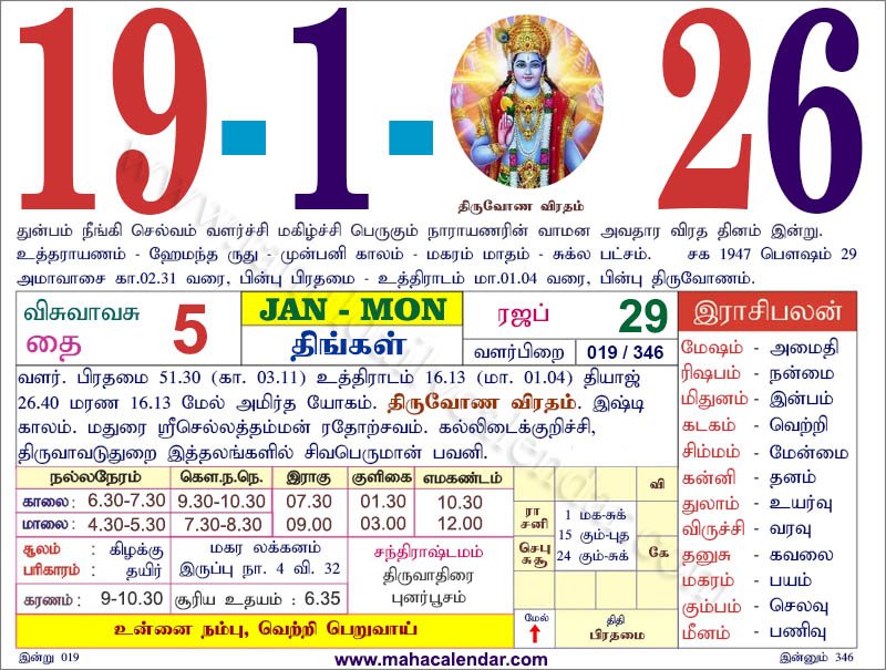 | திருவோணம் | 19-ஜனவரி-2026 திங்கள் |