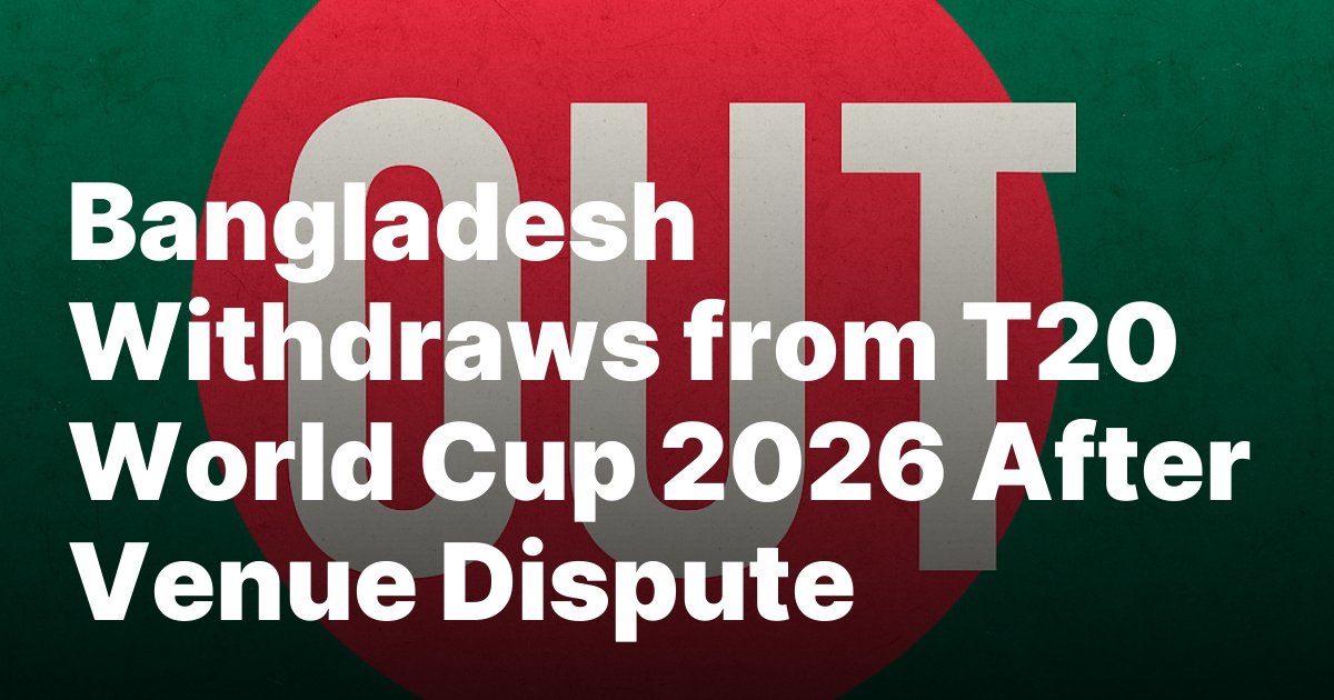 Bangladesh has been officially ruled out of the ICC Men’s T20 World Cup 2026 following a prolonged standoff with the International Cricket Council (ICC) over the location of their group-stage fixtures. The decision, confirmed after weeks of negotiations, marks one of the most significant withdrawals in recent ICC tournament history and has prompted Scotland’s elevation into the main draw.