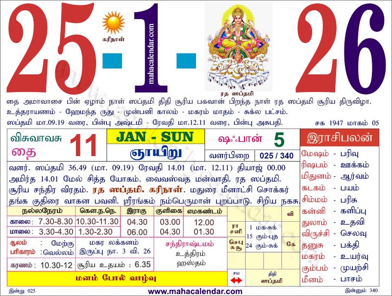 | கார்த்திகை | 27-ஜனவரி-2026 செவ்வாய் |