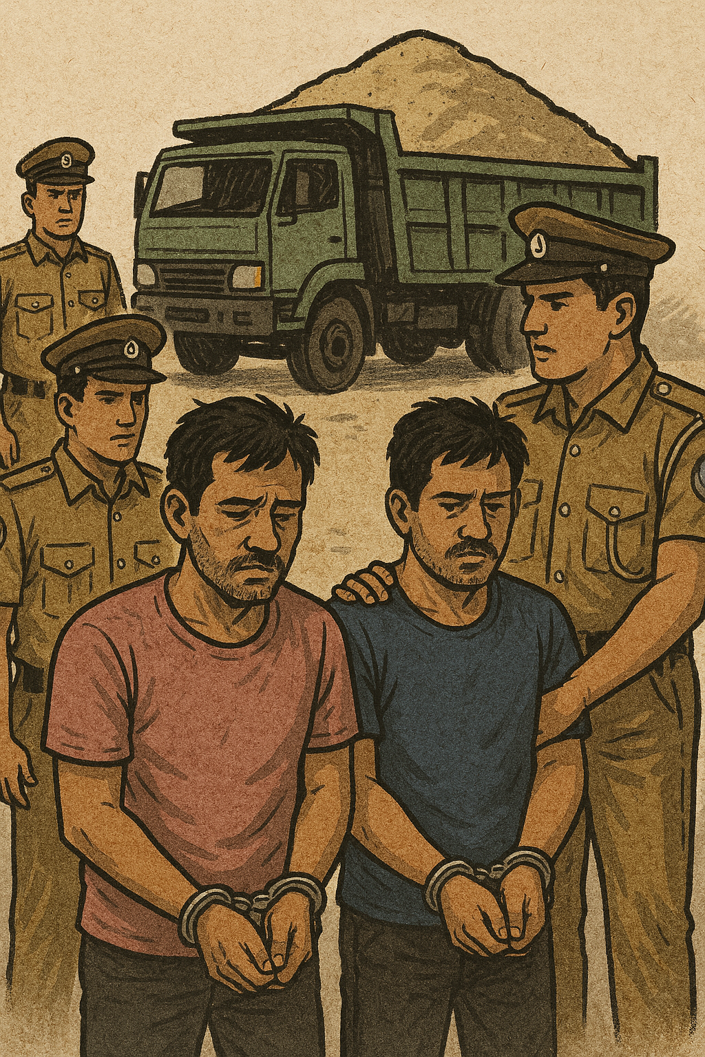 அனுமதிப் பத்திரமன்றி சட்டவிரோதமாக மணல் கடத்தலில் ஈடுபட்ட இருவர் செவ்வாய்க்கிழமை (27-01-2026) கைது செய்யப்பட்டுள்ளனர். இதன்போது மணல் ஏற்றி வந்த டிப்பர் வாகனமும் பொலிஸாரால் பறிமுதல் செய்யப்பட்டுள்ளது.