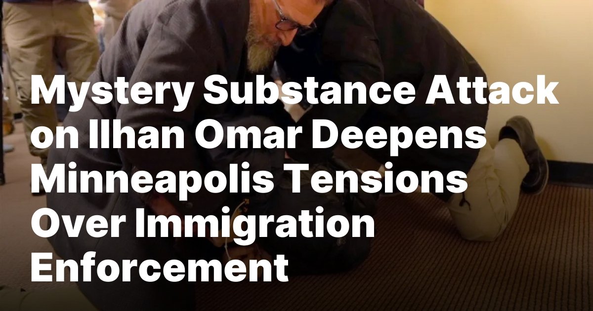 A town hall meeting in Minneapolis erupted into alarm on Tuesday evening when a man lunged at U.S. Representative Ilhan Omar and sprayed her with an unknown liquid from a syringe. The incident occurred as Omar addressed constituents on the city’s escalating unrest tied to federal immigration enforcement.