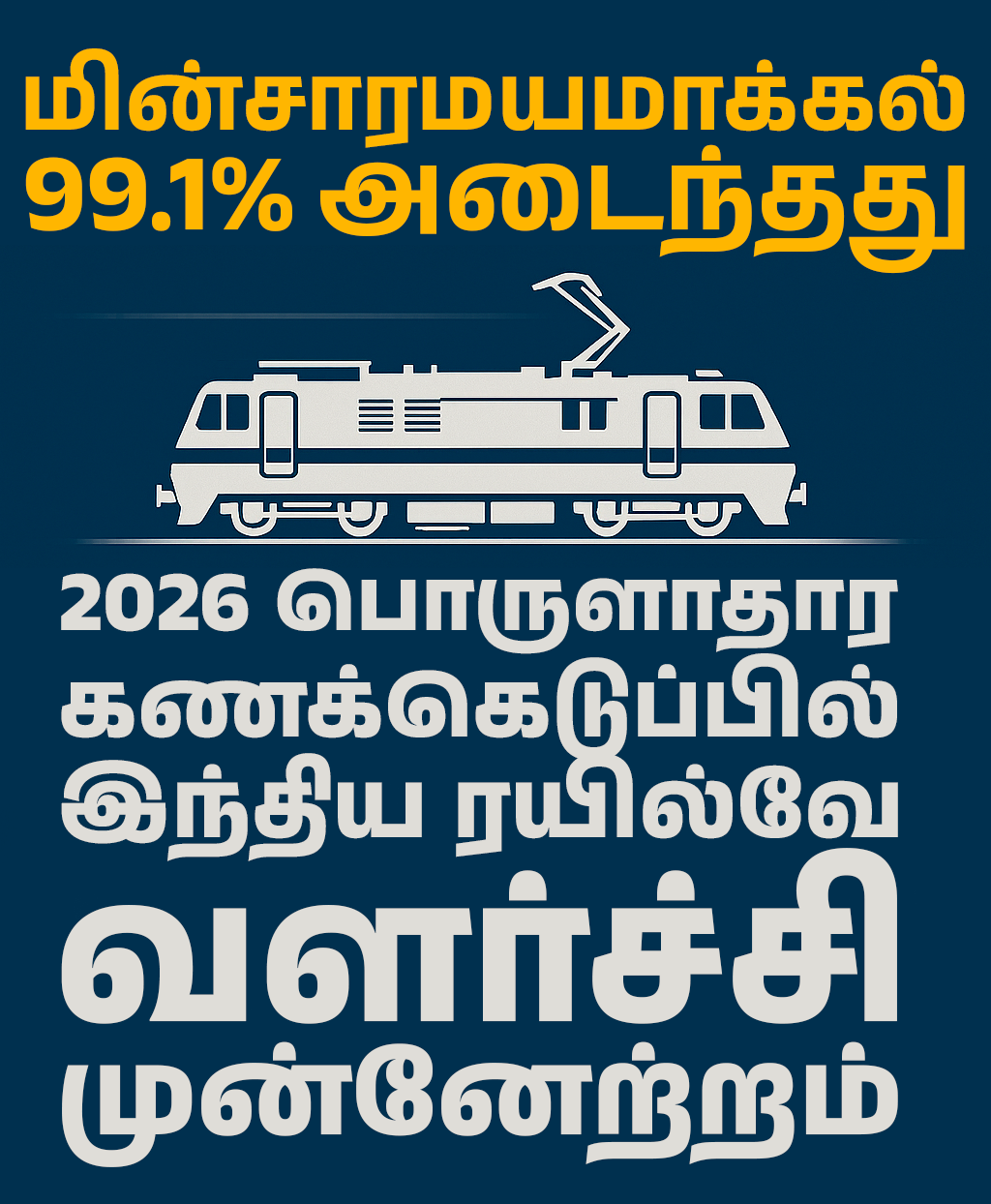 மின்சாரமயமாக்கல் முழுமையாக நிறைவேறும் 2026 தொடக்கத்தில், இந்திய ரயில்வே உலகளவில் மிகப்பெரிய மின்சார ரயில்வே வலையமைப்பாக மாறும். தொழில்நுட்ப மேம்பாடு, நிர்வாக சீர்திருத்தங்கள் மற்றும் தொடர்ந்த முதலீடுகள் மூலம், இந்திய ரயில்வே எதிர்காலத்தில் வேகமான, பாதுகாப்பான மற்றும் சுற்றுச்சூழல் நட்பான போக்குவரத்து சேவையாக உருவாகும்.