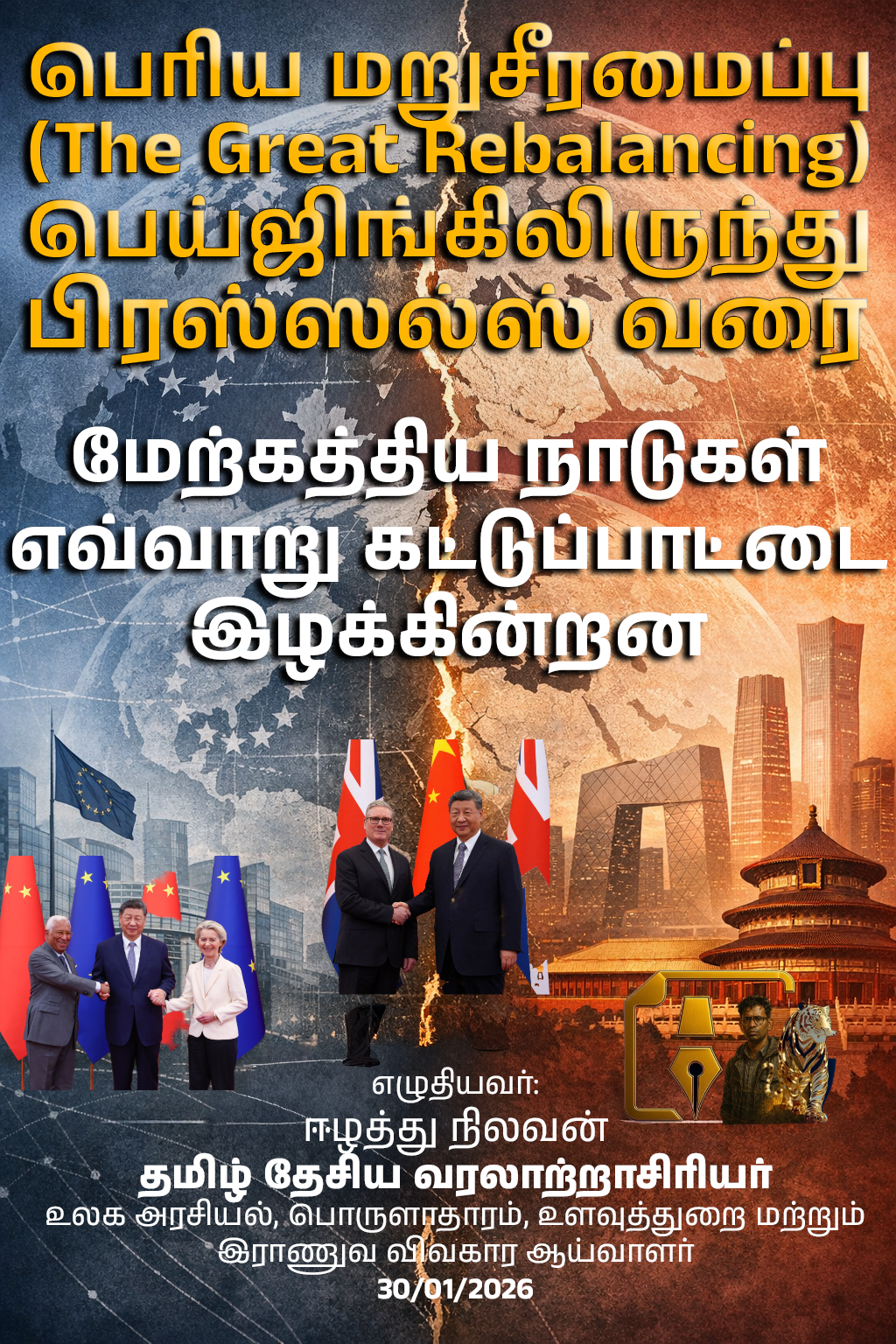 எட்டு ஆண்டுகளுக்குப் பிறகு, ஒரு பிரிட்டிஷ் பிரதமர் பெய்ஜிங்கில் உள்ள மக்கள் மகா மண்டபத்தில் (Great Hall of the People) காலடி வைத்துள்ளார். அதிபர் ஷி ஜின்பிங் உடன் சர் கீர் ஸ்டார்மர் நடத்திய இந்தச் சந்திப்பு, வெறும் இராஜதந்திர மரியாதைக்கான நிகழ்வு அல்ல. அது, இத்தாத்துவ பிடிவாதங்களை விட்டு விலகி, நடைமுறைப் பிழைப்பிற்காக (Pragmatic Survival) ஐக்கிய இராச்சியம் அமைதியாக நகர்கிறது என்பதற்கான ஒரு முக்கியமான மூலோபாயச் சைகையாகும்.