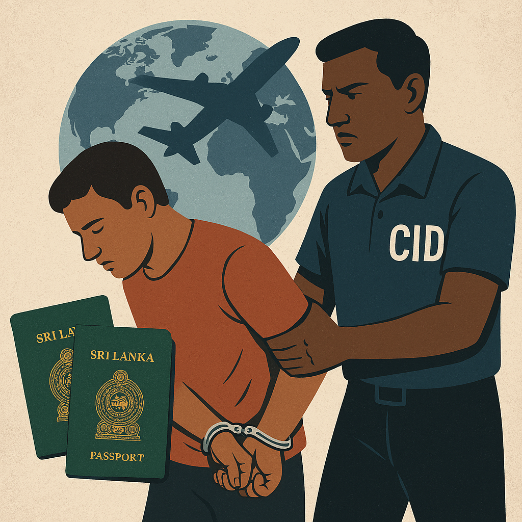 சந்தேக நபர், ஐக்கிய இராச்சியத்தில் வேலை வாங்கித்தருவதாக வாக்குறுதி அளித்து ஒரு மில்லியன் ரூபாயினை மோசடி செய்துள்ளதாக விசாரணைகளில் தெரியவந்துள்ளது.