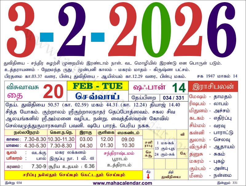 | தமிழ் நாட்காட்டி பிப்ரவரி 2026 | |