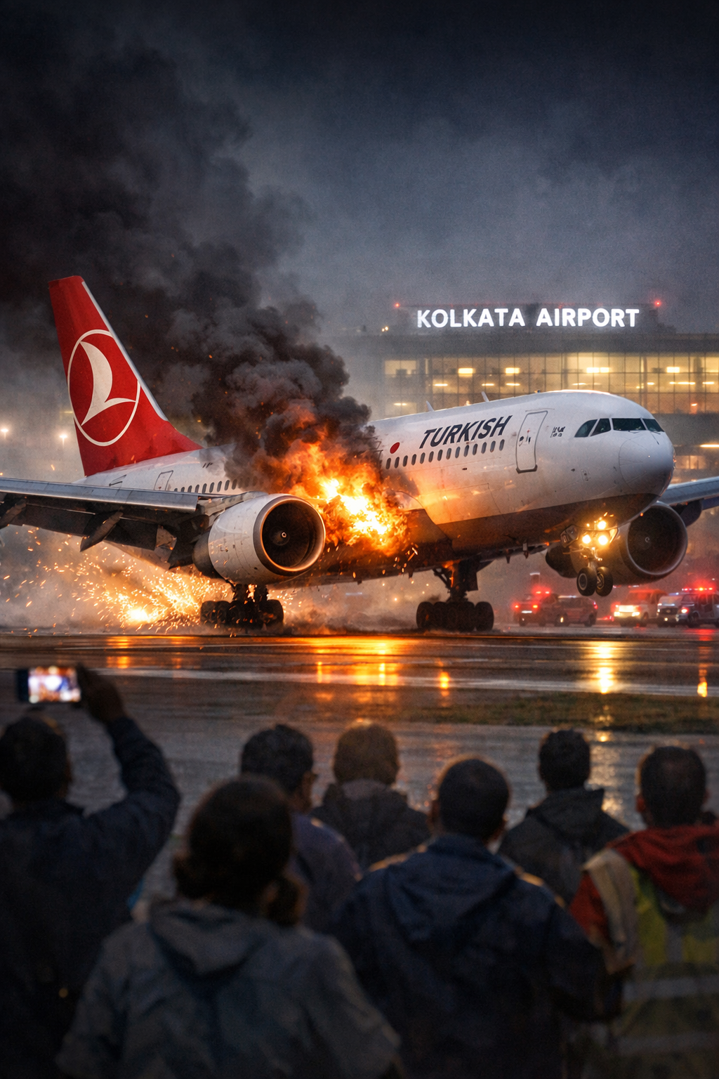 236 பயணிகள் மற்றும் பணியாளர்களுடன் சென்ற துருக்கிய ஏர்லைன்ஸ் விமானம் தீப்பிடித்து கொல்கத்தா விமான நிலையத்தில் பாதுகாப்பாக தரையிறங்கியது.