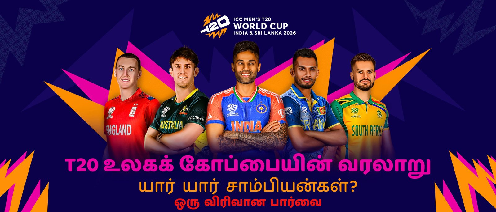 உலக கிரிக்கெட்டின் மிக வேகமான வடிவமான T20 போட்டியை உலகளவில் கொண்டாடும் ICC ஆண்கள் T20 உலகக் கோப்பை, 2007 முதல் இன்று வரை பல மறக்க முடியாத தருணங்களையும், பல்வேறு நாடுகளின் சாம்பியன் எழுச்சிகளையும் கண்டுள்ளது. 2026 ஆம் ஆண்டு இந்தியா–இலங்கை இணைந்து நடத்தும் 10வது பதிப்பை முன்னிட்டு, கடந்த வெற்றியாளர்கள் யார், இந்த தொடரின் பயணம் எப்படி இருந்தது என்பதைக் கிரிக்கெட் ரசிகர்கள் மீண்டும் நினைவுகூரும் தருணம் இது.