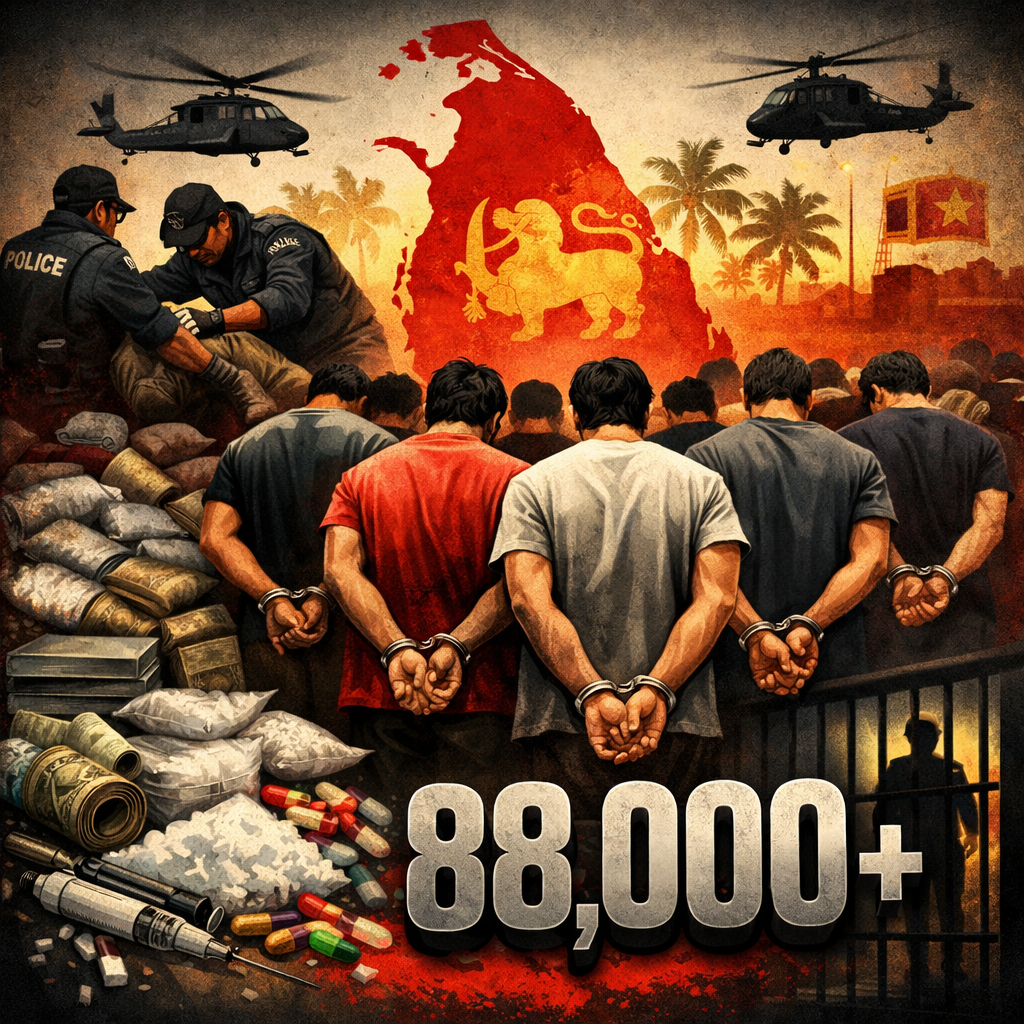 நாடளாவிய ரீதியில் முன்னெடுக்கப்பட்டுள்ள “முழு நாடுமே ஒன்றாக” என்னும் தேசிய போதைப்பொருள் ஒழிப்புத் திட்டத்துக்கமைய இதுவரை சுமார் 88, 177 சந்தேகநபர்கள் கைது செய்யப்பட்டுள்ளனர்.
