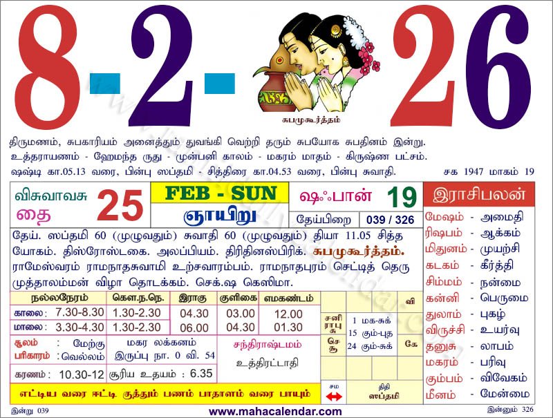 | தமிழ் நாட்காட்டி பிப்ரவரி 2026 | |