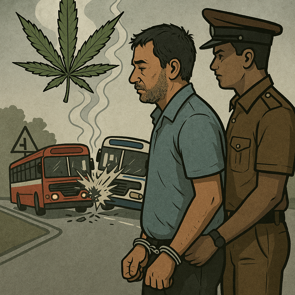 இதனையடுத்து கஞ்சா போதைப்பொருள் பயன்படுத்திய பஸ் சாரதி பொலிஸாரால் கைதுசெய்யப்பட்டுள்ளார்.