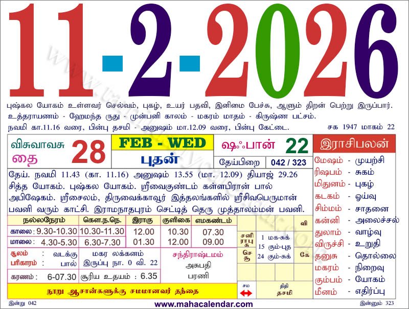 | தமிழ் நாட்காட்டி பிப்ரவரி 2026 | |