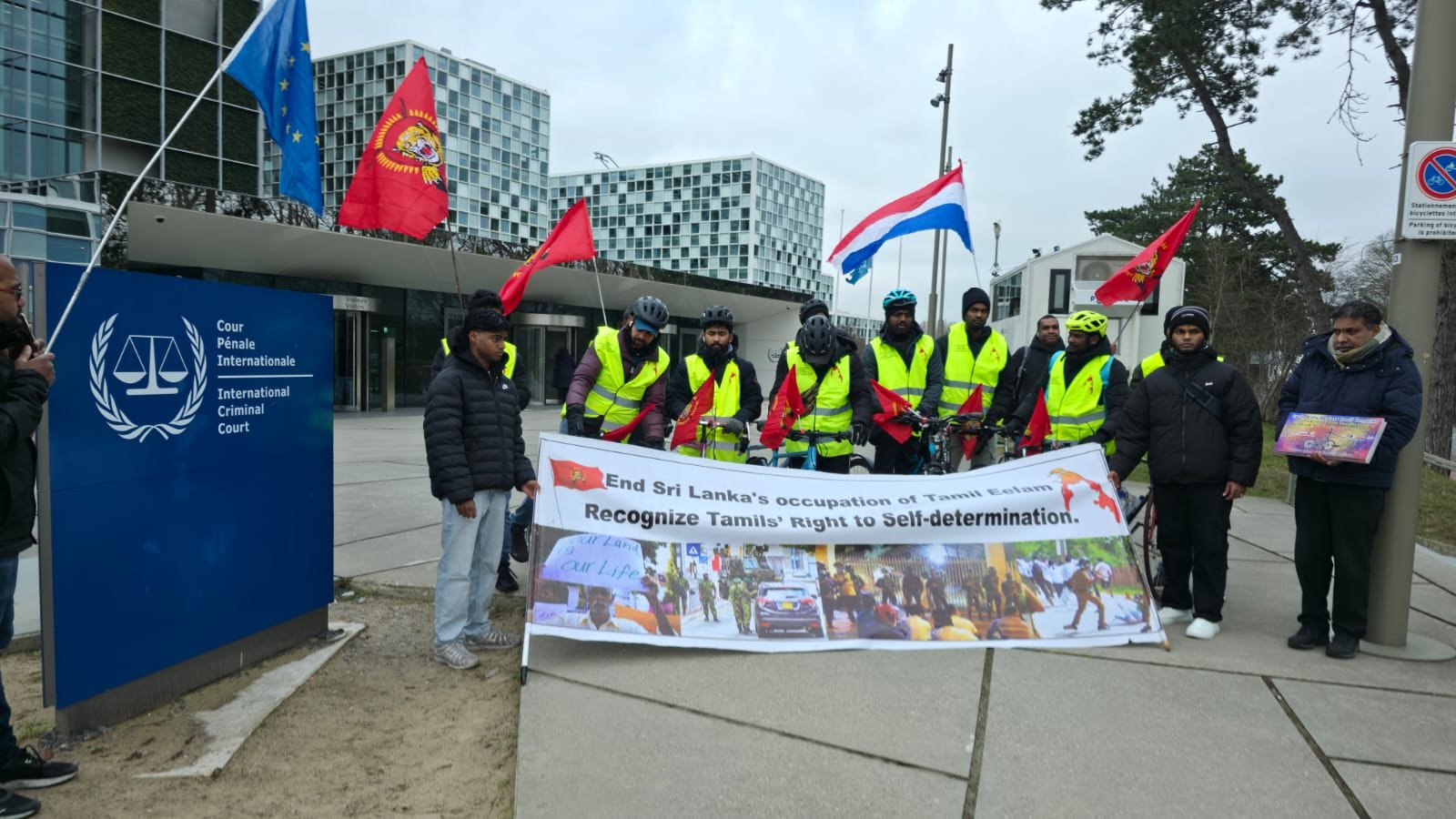 நெதர்லாந்தின் டென் ஹாக் நகரில் அமைந்துள்ள அனைத்துலக குற்றவியல் நீதிமன்றம் (International Criminal Court) முன்பாக குறித்த மனிதநேய ஈருருளிப்பயணம் தொடங்கப்பட்டது.