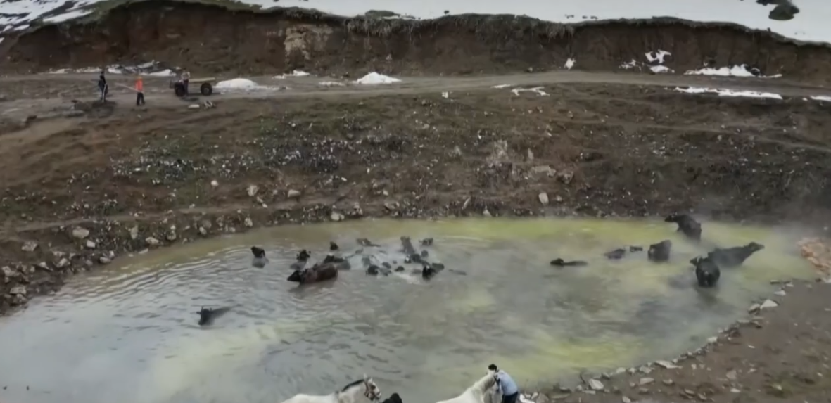The newly surfaced footage has quickly circulated on social media, drawing admiration for the animals’ calm, almost spa‑like retreat. Many viewers described the scenes as both humorous and unexpectedly serene, highlighting a lesser‑known aspect of rural life in Turkey’s geothermal heartland.