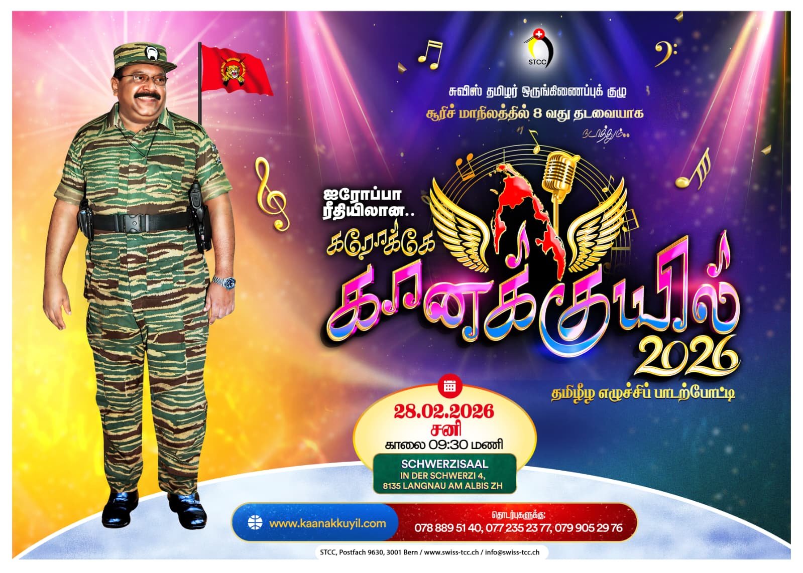 சுவிஸ் தமிழர் ஒருங்கிணைப்புக் குழு சூரிச் மாநிலத்தில் 8 வது தடவையாக நடாத்தும்.. ஐரோப்பா ரீதியிலான.. கானக்குயில் 2026 தமிழீழ எழுச்சிப் பாடற்போட்டி.