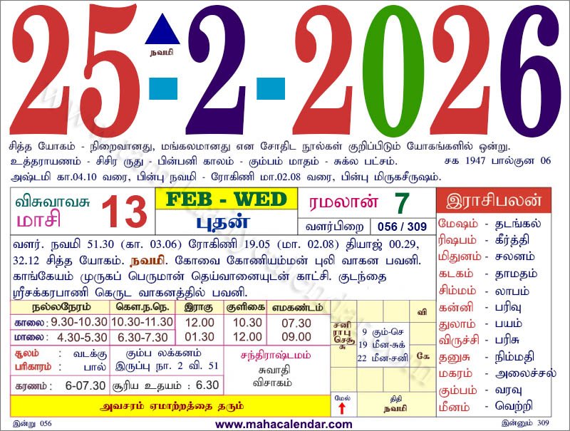 | தமிழ் நாட்காட்டி பிப்ரவரி 2026 | |
