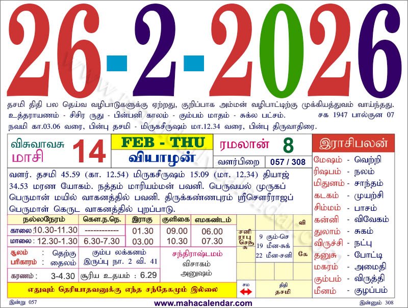 தமிழ் நாட்காட்டி பிப்ரவரி  2026