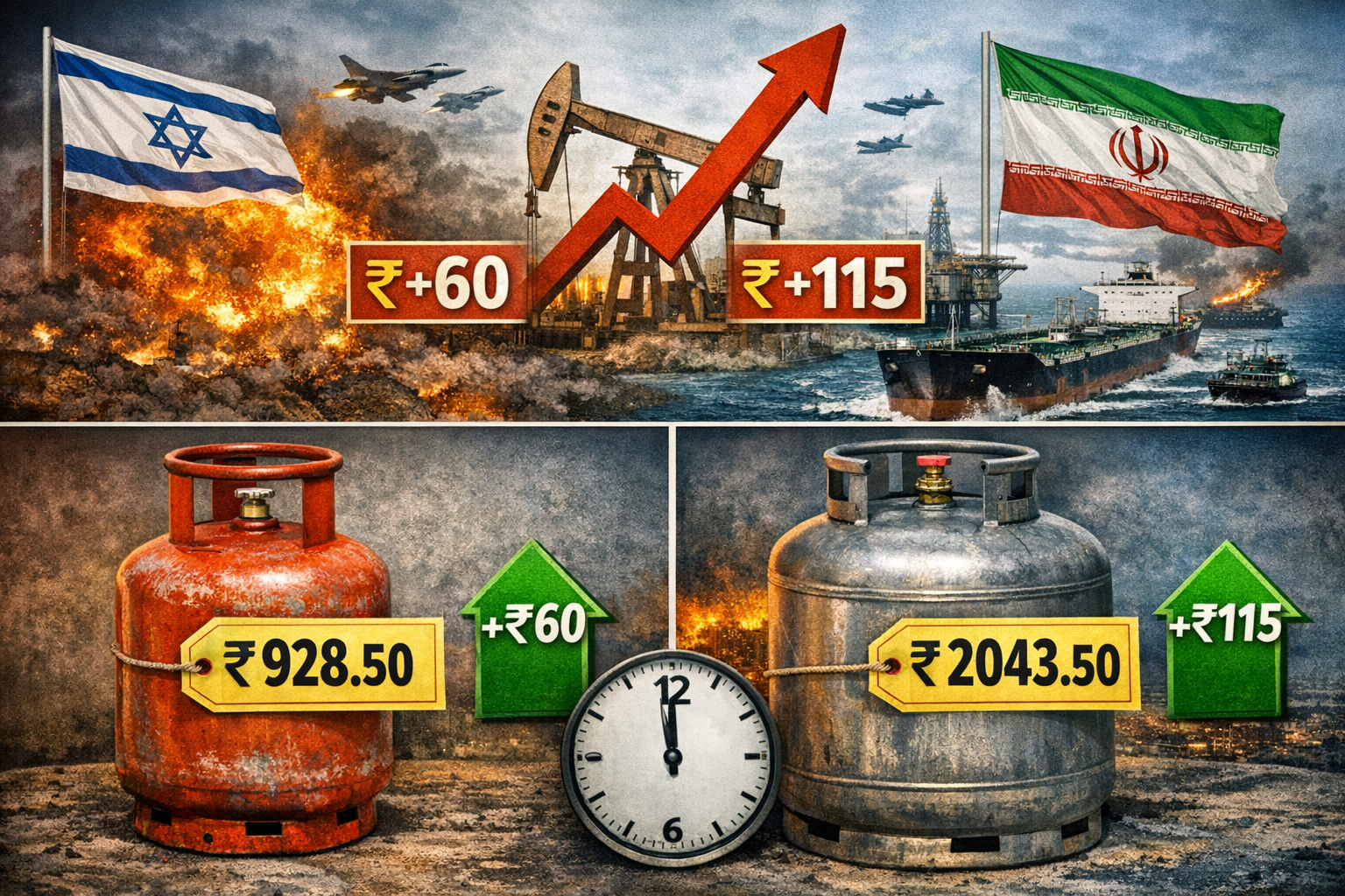 ஈரான் போர் காரணமாக, நாடு முழுவதும் சிலிண்டர் விலை உயர்வு கண்டது. வீட்டு பயன்பாட்டு சிலிண்டர் 60 ரூபாயும், வணிக பயன்பாட்டு சிலிண்டர் 115 ரூபாயும் உயர்வு கண்டது. இந்த விலை உயர்வு நள்ளிரவு முதல் அமலுக்கு வந்தது.