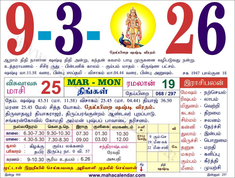 | கார்த்திகை | 23-மார்ச்-2026 திங்கட்கிழமை |
