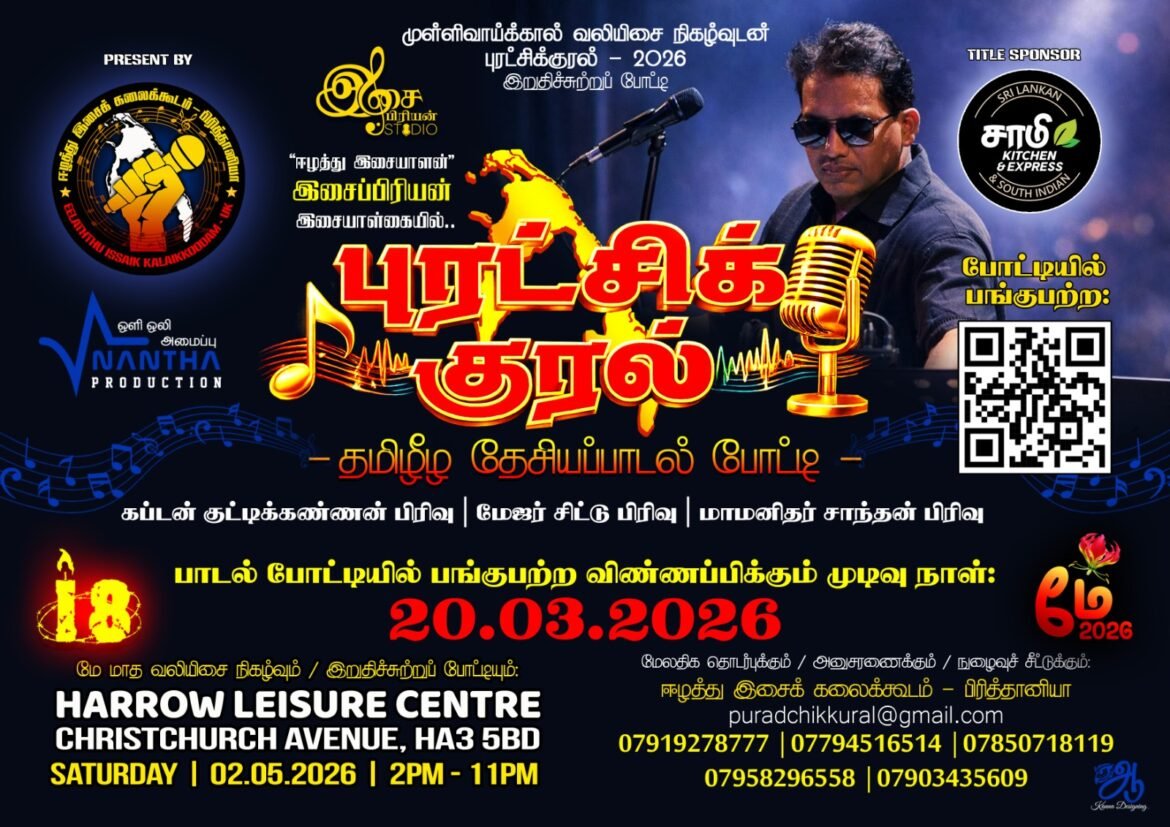 “முள்ளிவாய்க்கால் வலியிசை நிகழ்வுடன்.. “புரட்சிக்குரல்” இறுதிச்சுற்றுப் போட்டி – 2026.