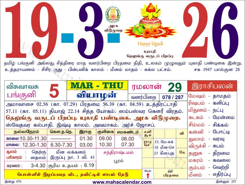 | தமிழ் நாட்காட்டி மார்ச் 2026 | |