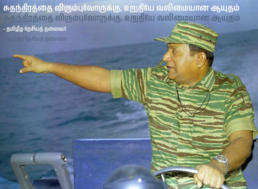 எமது போராட்டம் எத்தனையோ சவால்களுக்கு ஈடுகொடுத்து தனது விடுதலைப்பயணத்தில் வெற்றிநடைபோட முடிந்தது என்றால், அதற்கான அடிப்படைக் காரணம் எமது இலட்சிய உறுதிதான் என்பதை நான் திட்டவட்டமாகக் கூறுவேன். நீண்ட வரலாற்று அனுபவத்தில் நான் கண்ட உண்மை இது.