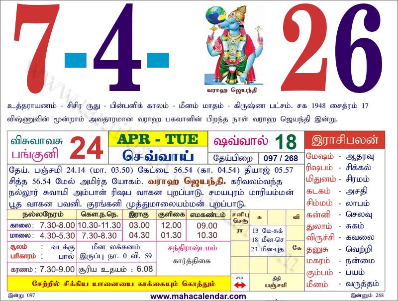 | கார்த்திகை | 19-ஏப்-2026 ஞாயிறு |
