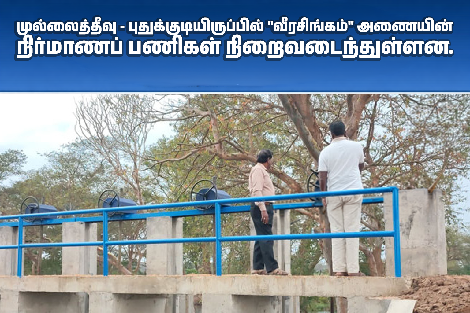 முல்லைத்தீவு – புதுக்குடியிருப்பில் “வீரசிங்கம்” அணையின் நிர்மாணப் பணிகள் நிறைவடைந்துள்ளன.