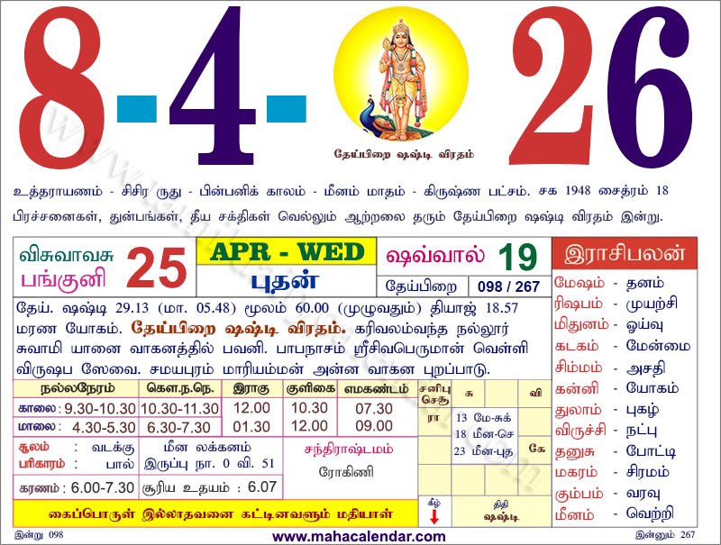 | கார்த்திகை | 19-ஏப்-2026 ஞாயிறு |