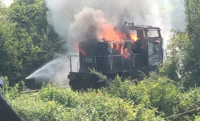 புகையிரத இயந்திரம் தீயினால் பெருமளவில் பாதிக்கப்பட்டுள்ளதாக அறிய முடிகின்றது.