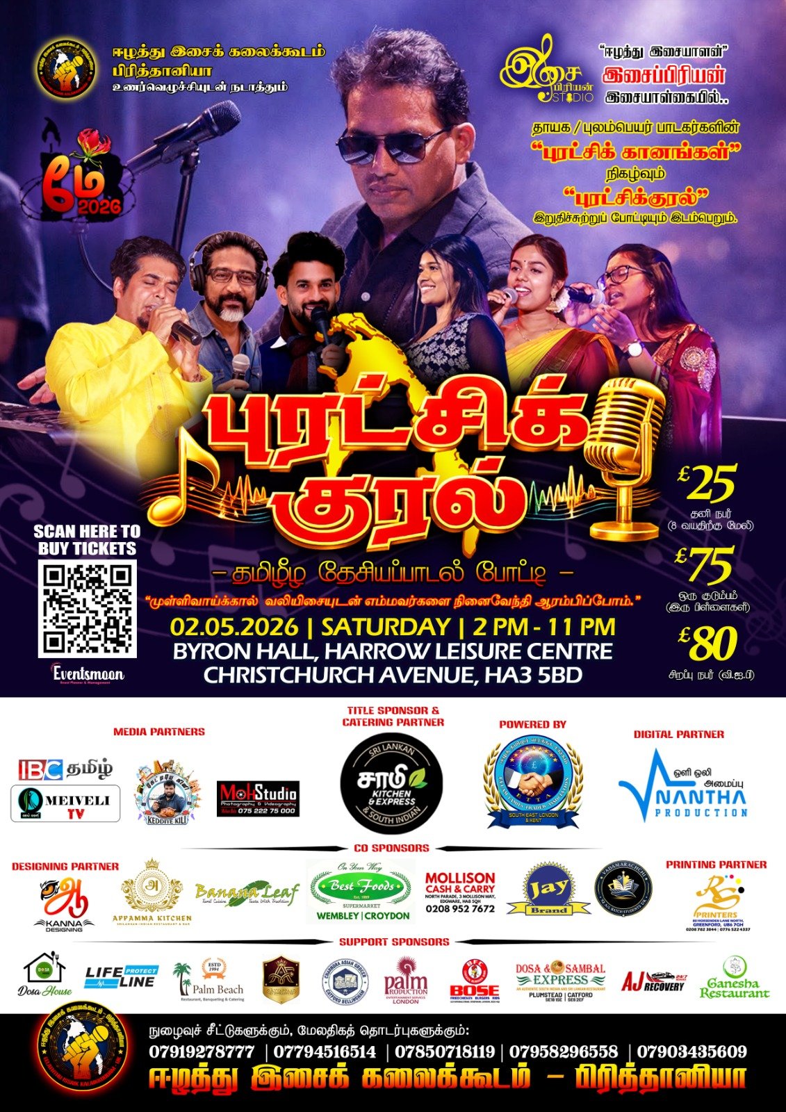 முள்ளிவாய்க்கால் தமிழின அழிப்பில் ஆகுதியானவர்களை நினைவேந்தி… ஈழத்து இசைக் கலைக்கூடம் – பிரித்தானியா உணர்வெழுச்சியுடன் நடாத்தும்..