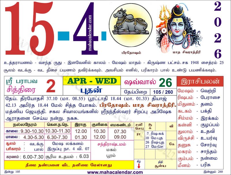 | மாத சிவராத்திரி | 15-ஏப்-2026 புதன்கிழமை |