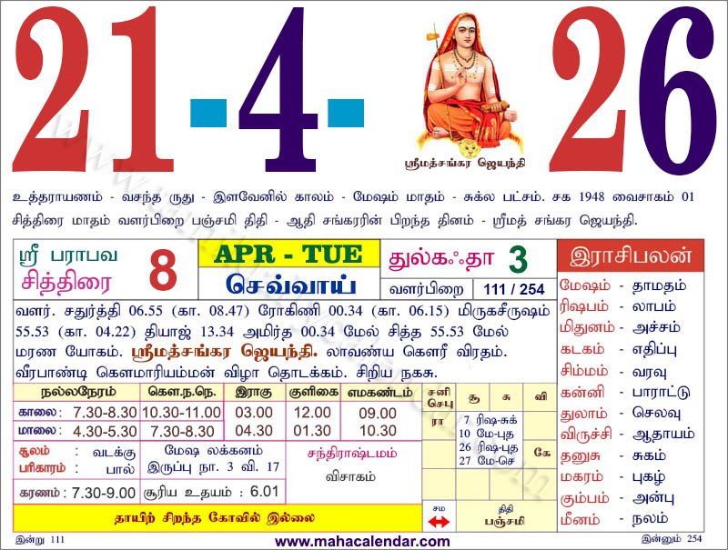 | கார்த்திகை | 19-ஏப்-2026 ஞாயிறு |