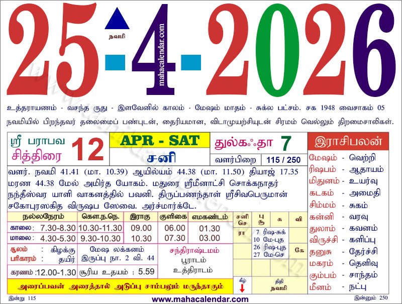 | நவமி | 11-ஏப்-2026 சனிக்கிழமை 25-ஏப்-2026 சனிக்கிழமை |